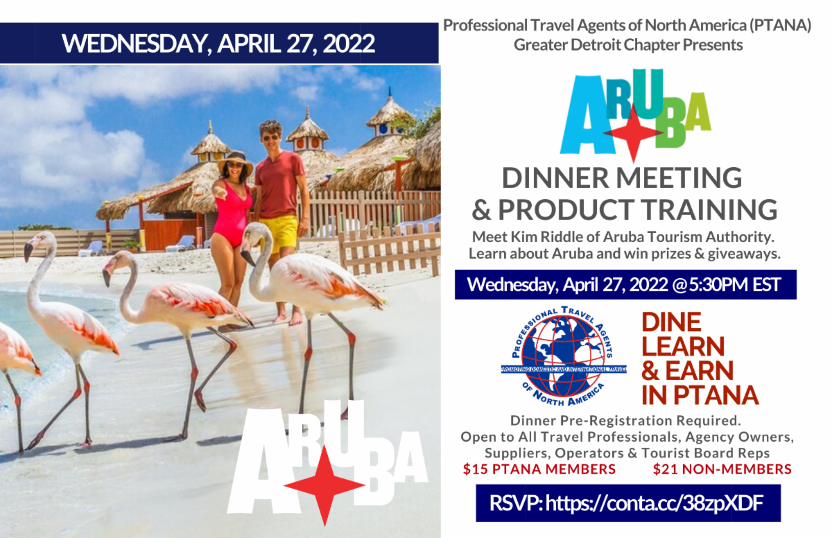 Aruba Night (In Person) PTANA Greater Detroit Chapter Dinner Meeting & Product Training Apr 27 2022